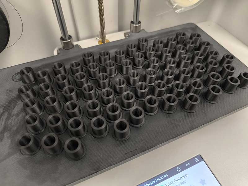 Con nuestra Markforged Mark Two podemos realizar una impresión en nylon con refuerzo real de partículas de fibra de carbono y con refuerzos continuos de fibra de carbono, fibra de vidrio, fibra de vidrio de alta temperatura o kevlar, pudiendo lograr resistencias similares al aluminio. Una pieza impresa directamente, sin necesidad de mecanizados ni de postprocesos adicionales, simplemente lista para utilizar.