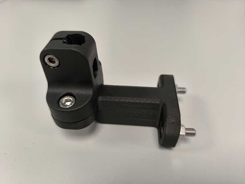 Impresión 3D portacables cadena. A la derecha mecanizado, a la izquierda en 3D 8 meses después de su instalación podemos confirmar que las toberas de aspiración impresas en 3D dan un muy buen resultado contra el desgaste prematuro. El material de impresión utilizado resulta ser un gran aliado para este tipo de aplicaciones. Nylon con un 30% de aporte real de fibra de carbono. Impresión 3D conector cargador